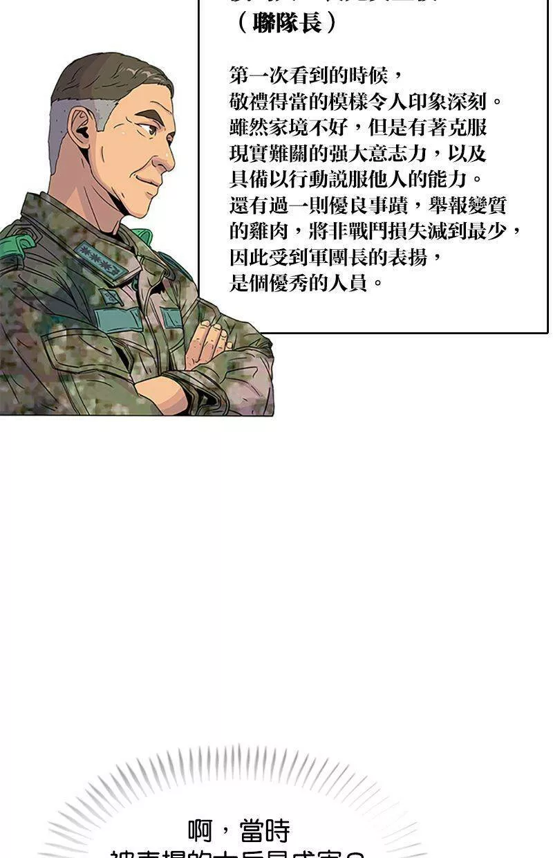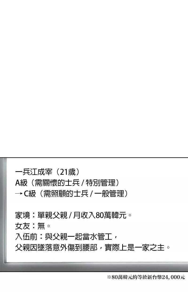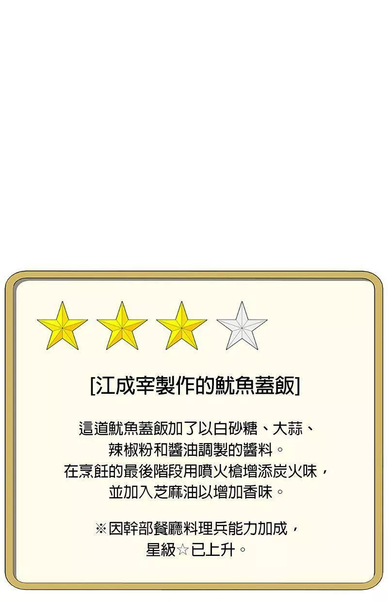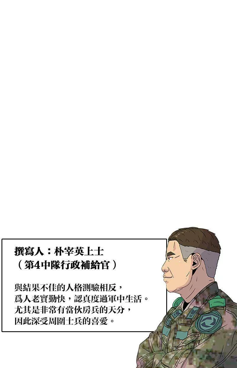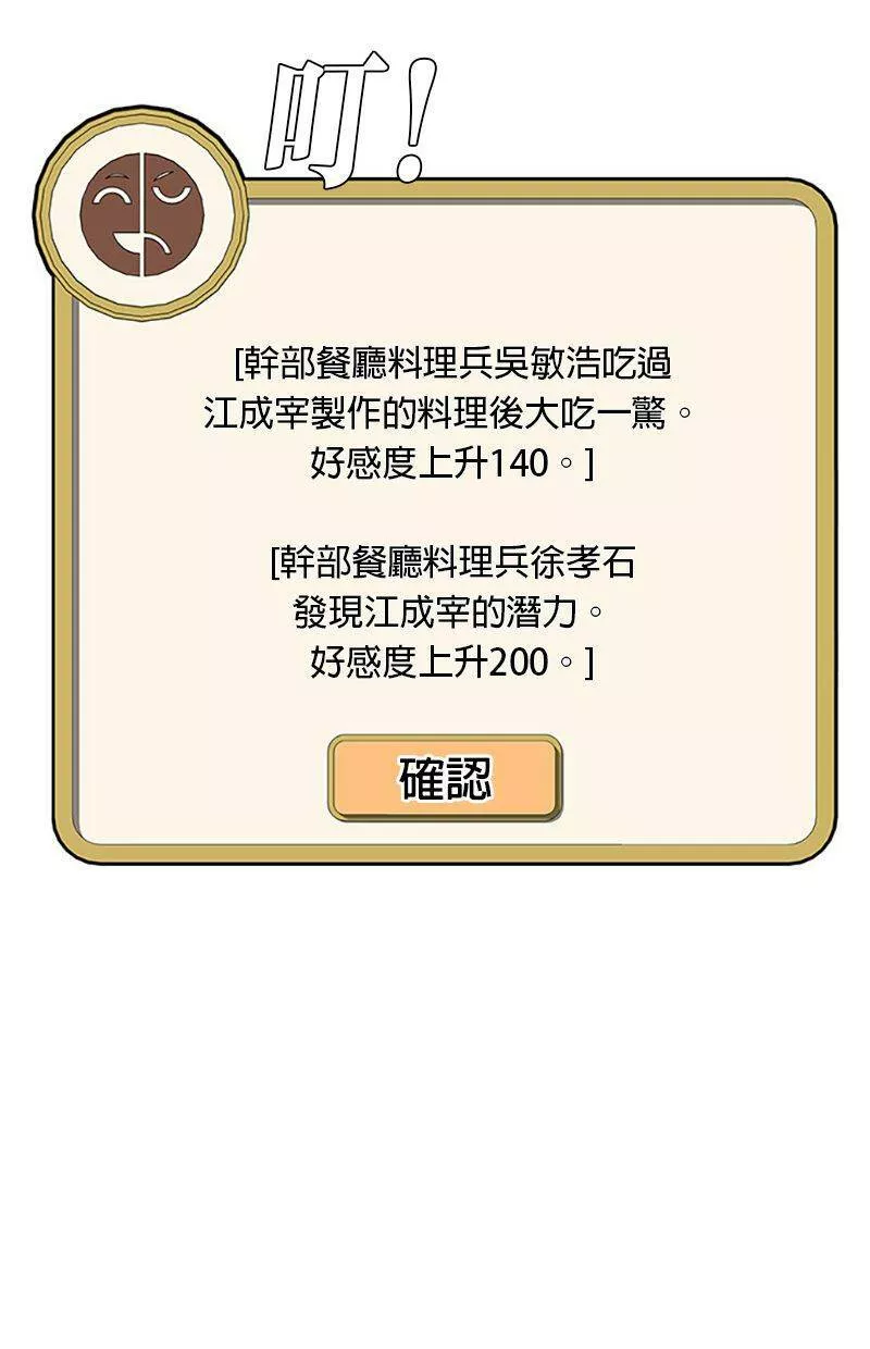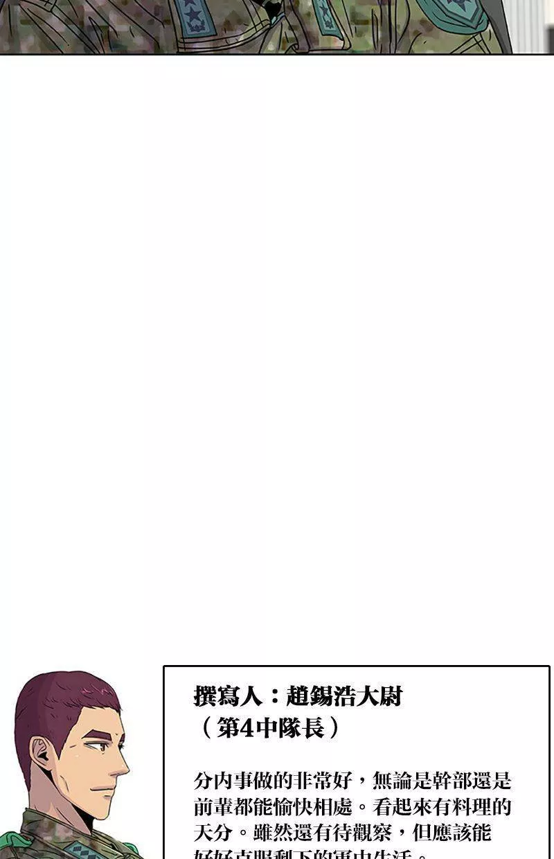 Kitchen Soldier又名菜鸟伙房兵,类型为奇幻的高人气漫画,漫画简介:21岁的江成宰是大韩民国典型的穷二代,辛苦维持生计之际收到了入伍通知。惴惴不安的新兵生活突然出现了一道曙光,只要跟着只有他才能看到的“游戏教学”破任务升级,就有机会成为军中的传奇厨师!