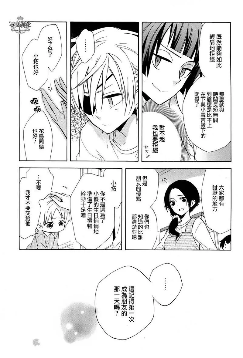 被邀请参加桐藤渚茶会的日富美。一起度过了愉快的时光。她开始想更多地和渚在一起,但她缺乏自信,感到困惑。此时,日富美被仰慕渚的学生拦住了…… 互相思念的渚与日富美,能够相信爱情吗?