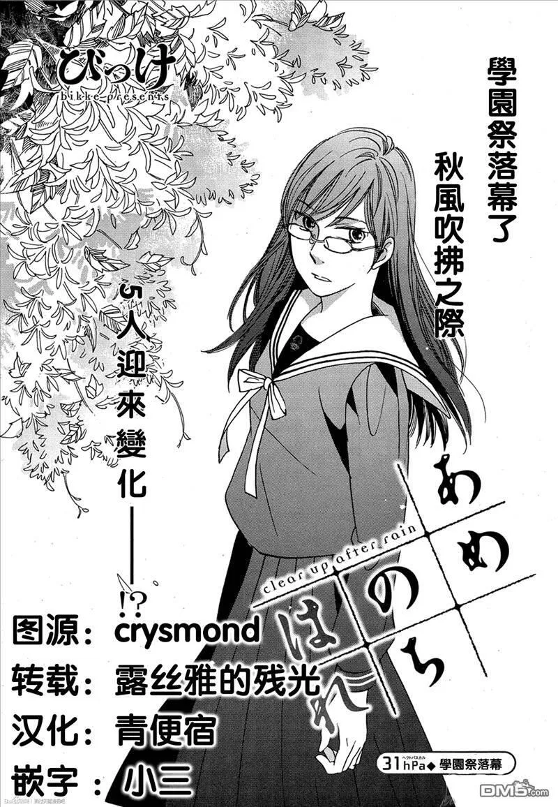 雨过天晴又名,类型为体育竞技的高人气漫画,漫画简介:名门高校·雨谷学园的入学仪式当天,罕见地下起来了春雨。巨大的雷鸣过后,新入学生的叶月、冬马、悠介、圆的身体忽然发生异变。不知为何,他们全都变成了女生——!!女体化之后,叶月她们开始在邻校的雨谷“女子”...