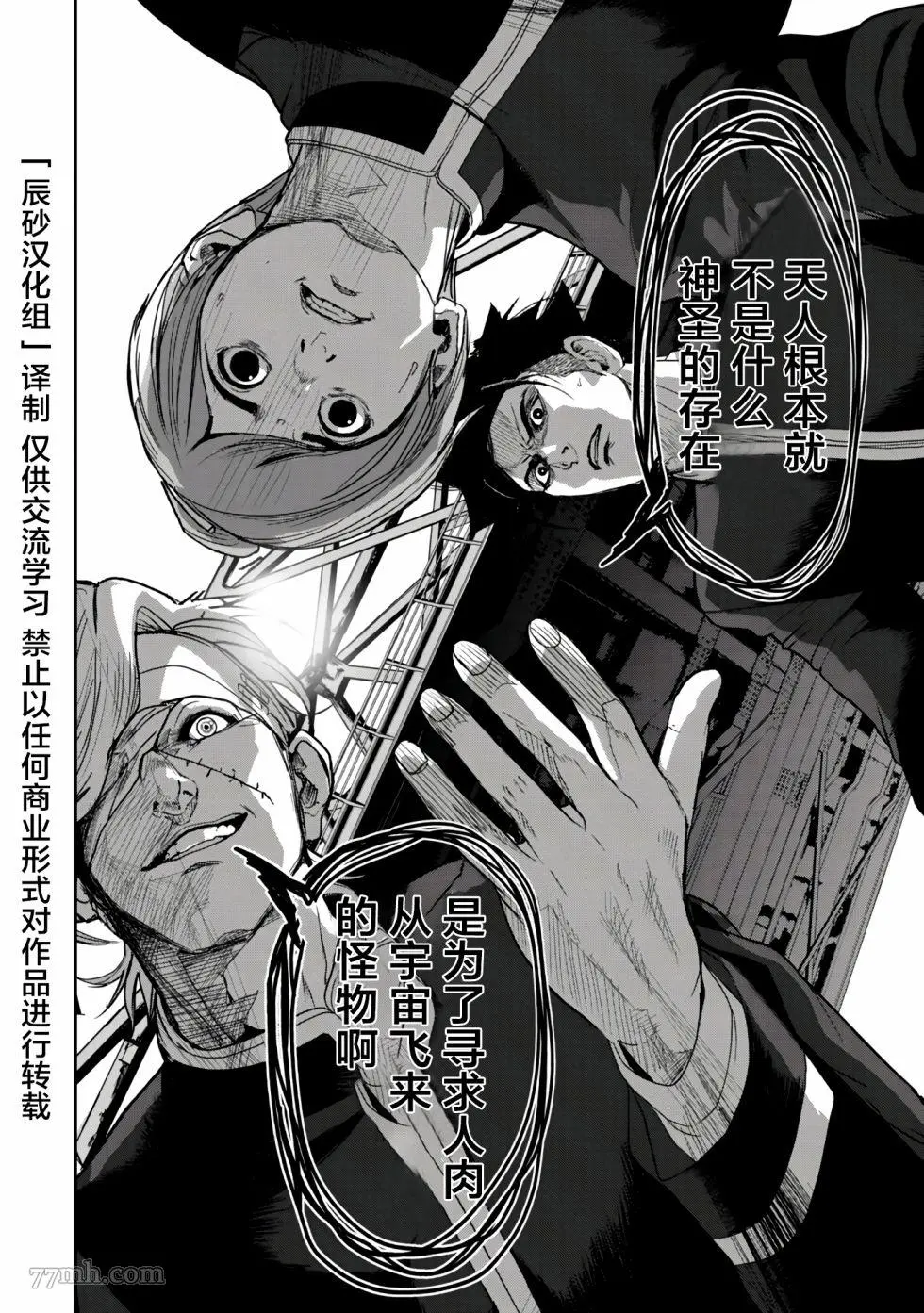 食粮人类RE又名 ,类型为恐怖惊悚|推理悬疑的高人气漫画,漫画简介:家畜食用植物,人类食用家畜,而更上一层的“天人”,统治人类、整合人类、食用人类。人类放下战争,逐渐转变成天人所喜爱的乖巧“家畜”。 这天,天泽所暗恋的女孩——莲沼柚,被测出“特等”口感,即将成为天人的食粮。同学们怀着祝福的心,切下小指,准备让柚食用下去,化为美好的回忆…… 在这和平却又极端疯狂的世界,天泽大辉——是个异类。