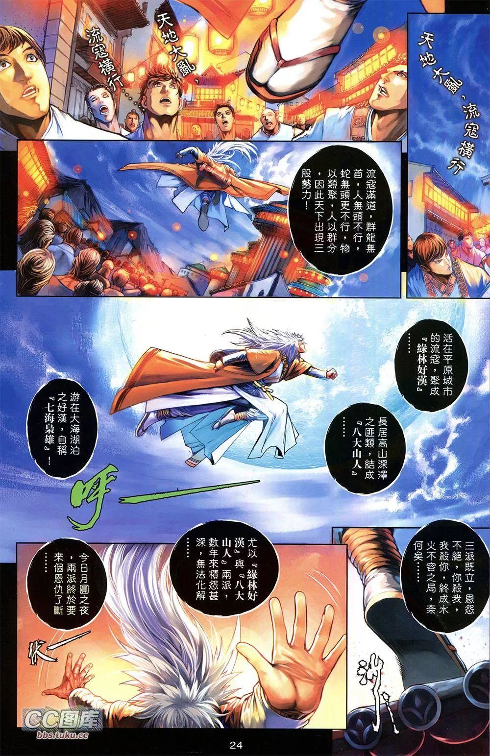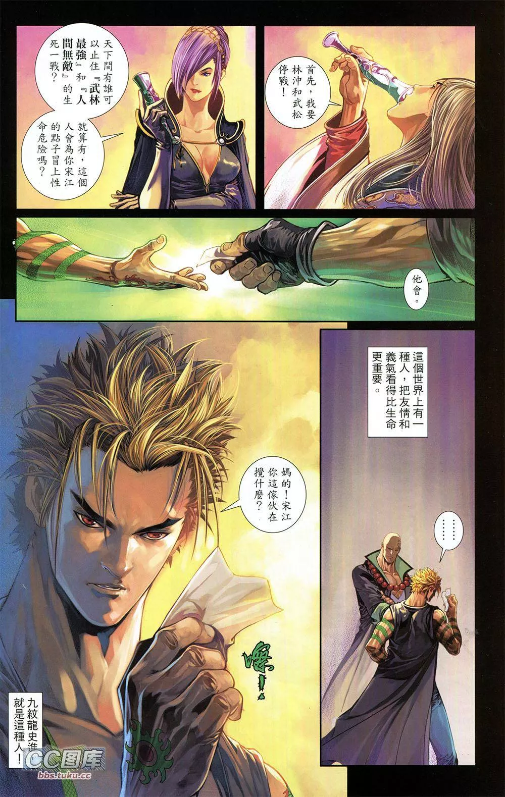 一零八又名108,类型为武侠经典的高人气漫画,漫画简介:又名:108 浪客一零八》讲述一群空有大志和本领的奇人异士,因为时代败坏,生活逼人,苦无向上流动机会,最后被逼落草为寇的一页页传奇故事。 在故事里,根据小说《水浒传》原来的设定,三十六天罡星人马分成三派,活在平原城市的流寇,聚成「绿林好汉」;;长居高山深泽之匪类,结成「八大山人」;游在大海湖泊之好汉,自称「七海枭雄」!而七十二地煞星则是武林中最可怕的魔教成员,三十六天罡星三派人马本来互相争斗,但在及时雨宋江穿针引线下,三派将会联成一线,共同对抗魔教七十二地煞星的挑战…… 《一零八》的故事,就由代表着「绿林好汉」前八十万禁军教头人称「武林最强」的林冲与代表着「八大山人」外号「人间无敌」的行者武松一决生死的惊天决战开始…… 「这是一个利益在前,道德在后的时代:金钱、地位、权利,已经成为世人追逐的唯一之物。道德和仁义,却渐渐被人忘却。」 故事主旨便是要在道德和仁义被人逐渐遗忘的世道里,找寻人性中更有价值的东西,例如友情、义气、热血和胜利…