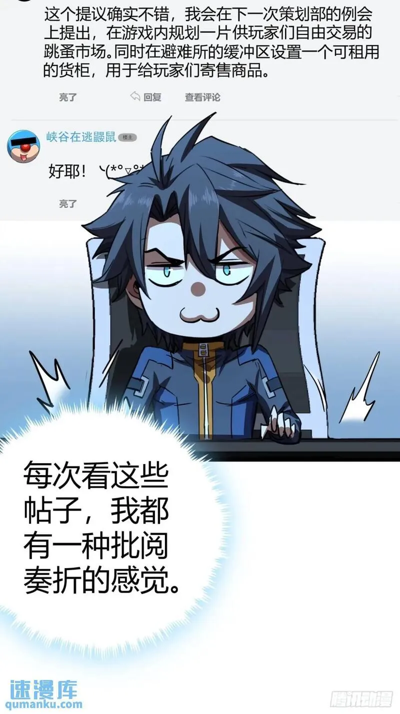 这游戏也太真实了又名,类型为穿越的高人气漫画,漫画简介:开局一座避难所,忽悠玩家来干活,我就是废土ONLINE主策兼客服——楚光。穿越到未来末日废土世界的我既然意外开启高科技避难所从此招募玩家当小弟,杀怪升级SOEASY。看我如何在充满变异怪物的世界建立起...
