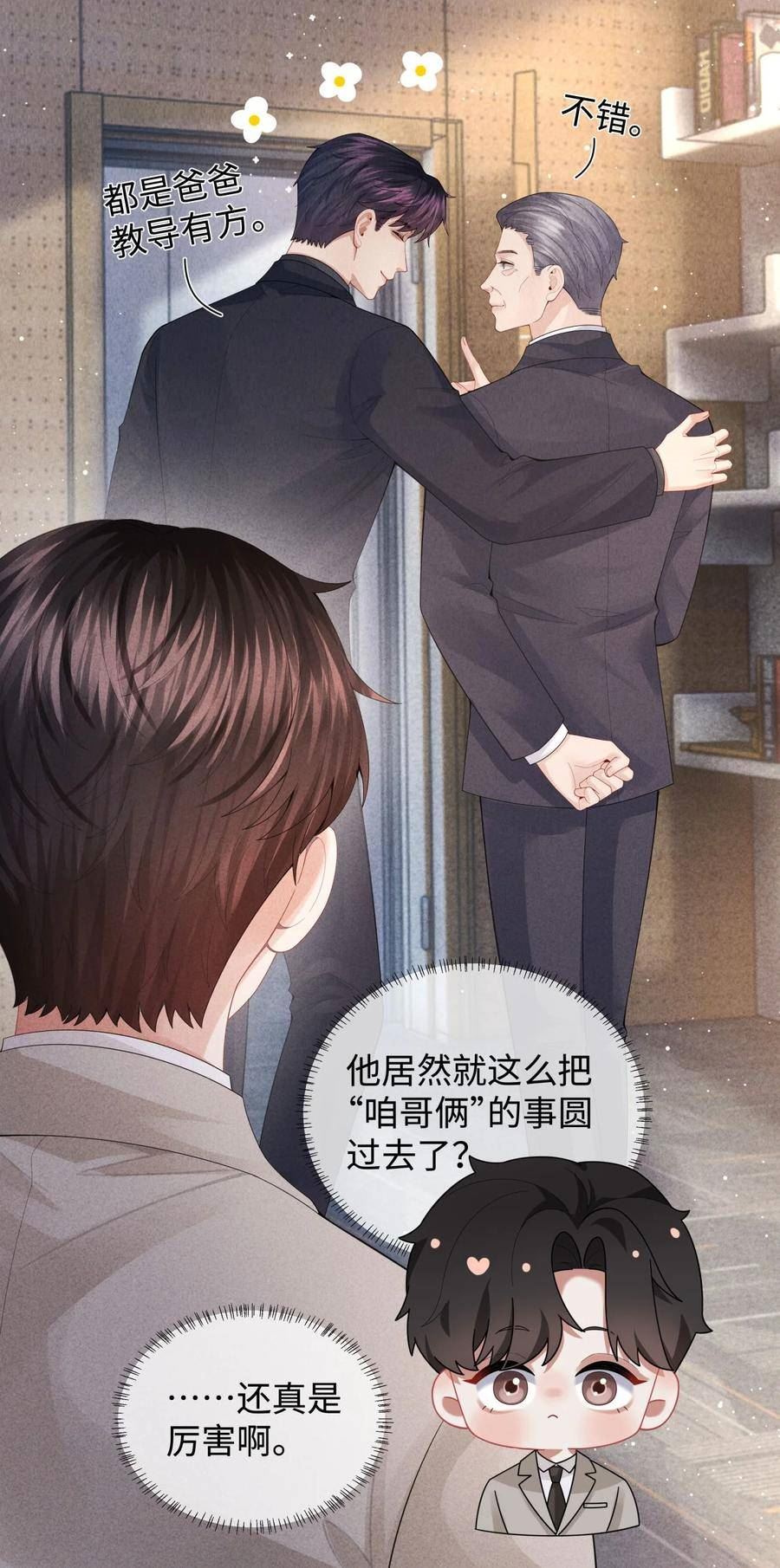 在孤儿院一直等待着的他,突然被生父找到接回了英国。本以为能过上有“家人”的幸福生活,却不想生父找他回家的理由是为了还钱做的抵债。而被抵给的那位年轻的养父,似乎是界内以心狠手辣闻名的大佬。一边堆着假笑喊着爸爸去配合养父演戏,一边又感受着“爸爸”压抑悲伤的苦衷。伪父子简直不要太香~~