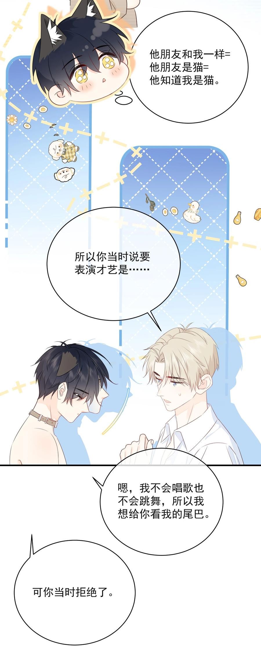 简介钟熠在厕所里遇见了个正在干饭的年轻人。这年轻人他即将开拍的新戏的另一位男主,名字叫容眠,是一个清冷黑发美少年。但他此时正拿着把勺子,专注地在吃着一盒……猫罐头?!脑洞很大但很靠谱的人类X只想干饭反射弧长小猫咪